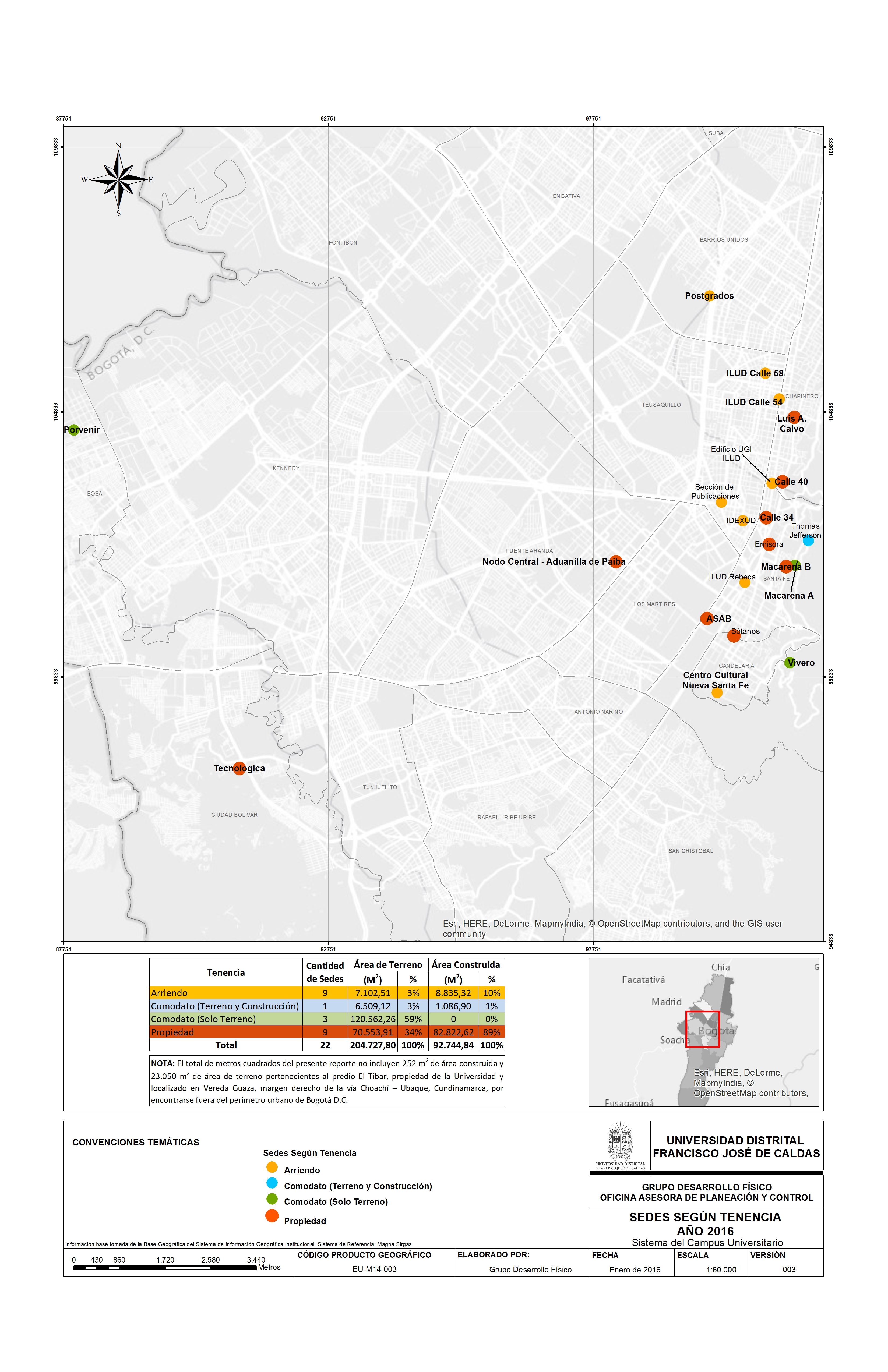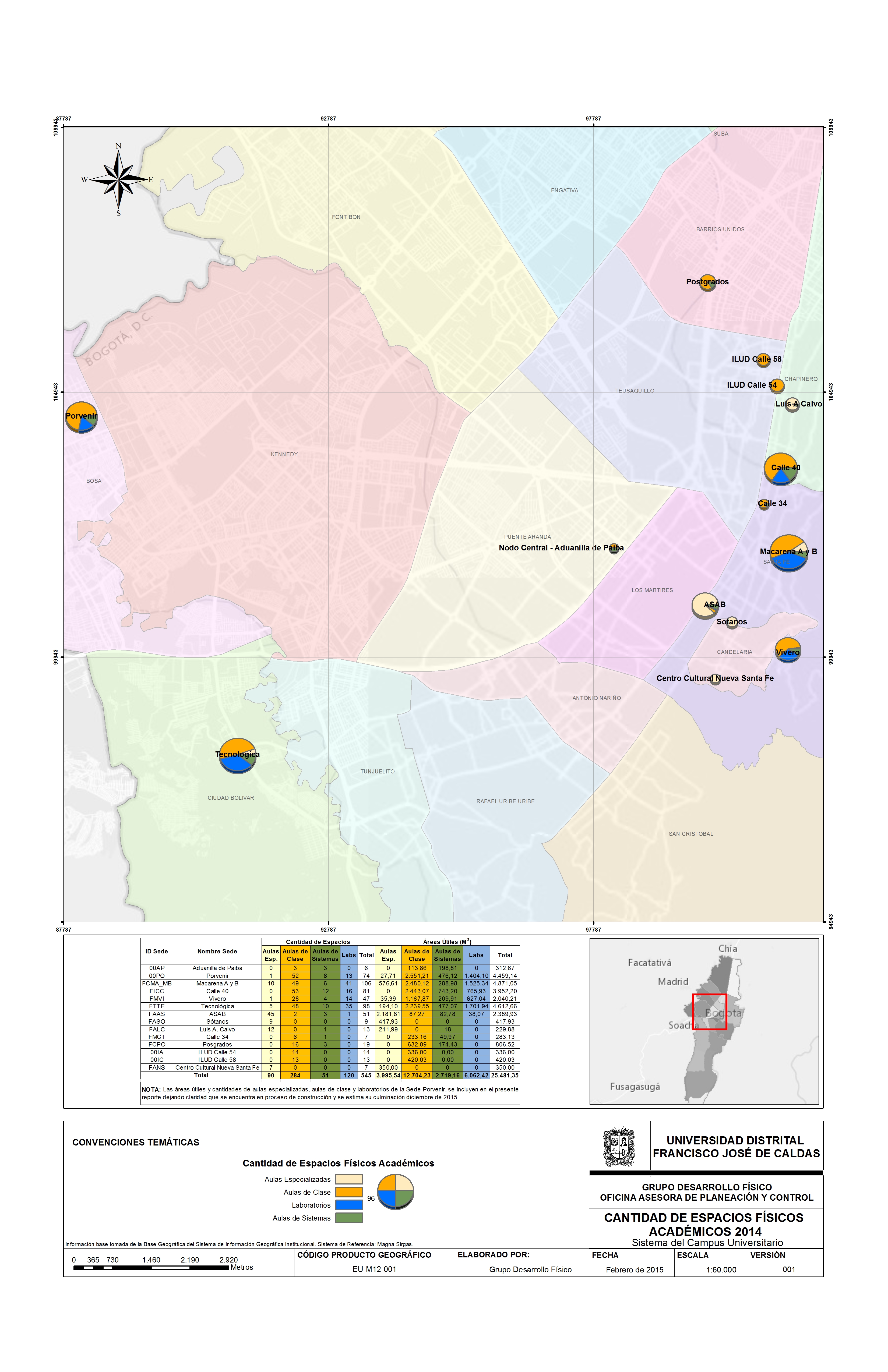Tipo de escala de información que incluye datos e información temática y espacial de tipo geográfico, catastral y urbano a nivel distrital. Permite analizar y relacionar la universidad con la ciudad, así como el impacto que genera y demás variables que influyen en la consolidación de una planta física descentralizada, brinda información catastral para las actividades de gestión inmobiliaria, saneamiento de predios, incorporación, estudios urbano catastrales, entre otros.
